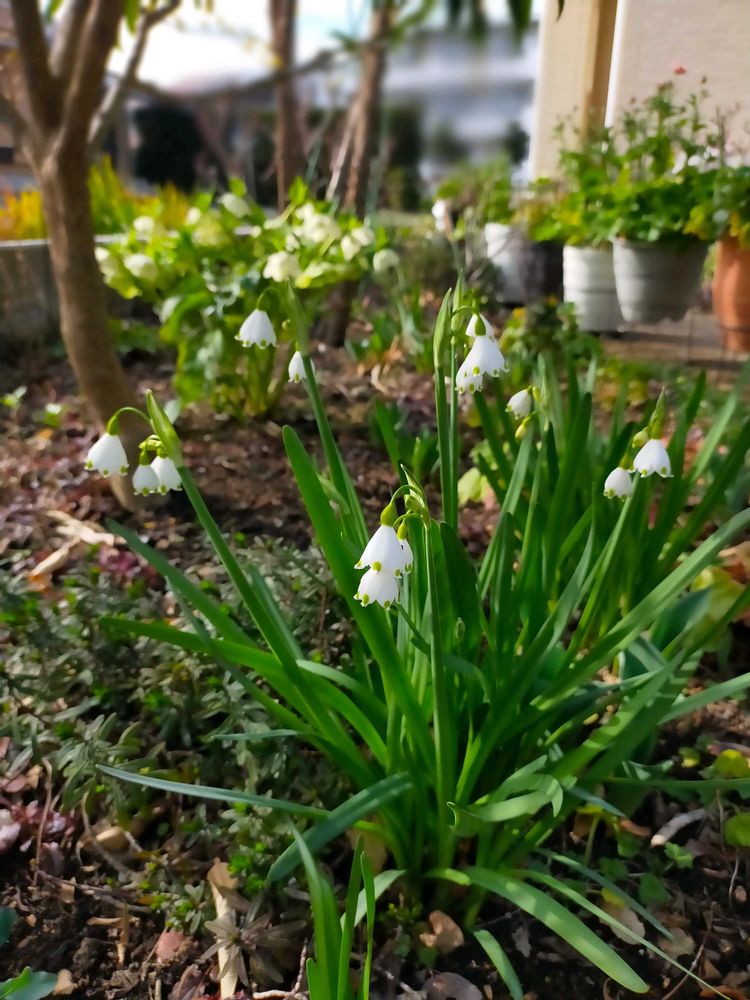 ④春のお庭の定番『スノーフレーク 』が咲き始めました💖お庭づくりを始めた頃からずっと家にいる子です😊