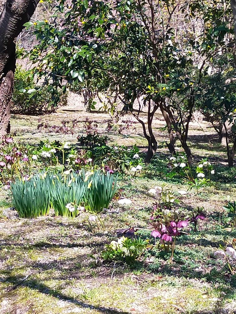 公園の中に クリスマスローズ畑があるのですね いいな〜〜 素敵なクリスマスローズ 木の下にひっそりと 美しく咲いていますね~〜スイセンとコラボもぴったりね~ ぽかぽか陽気だったのですか 🤗