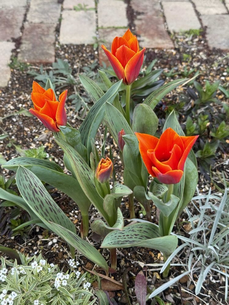 2年前から植えっぱなしにしている原種系チューリップ🌷ラブソングが開花しました。原種系は暖地でも夏越し出来て、強いですね。