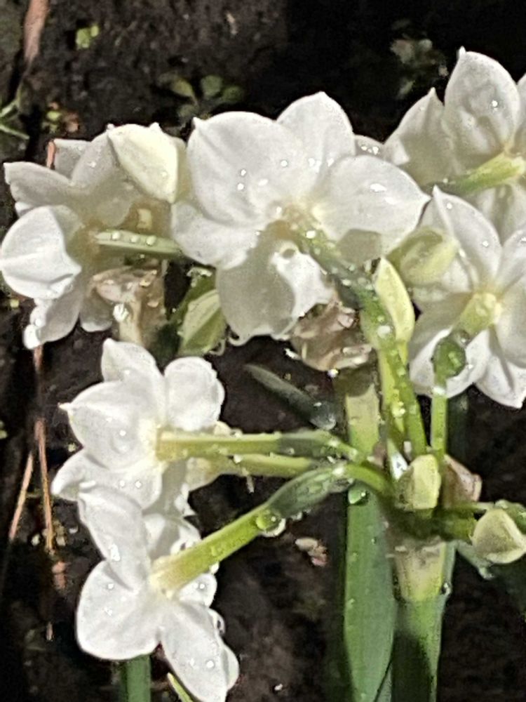 近所の緑道の水仙ですが、夜撮ったのでこんな感じに。