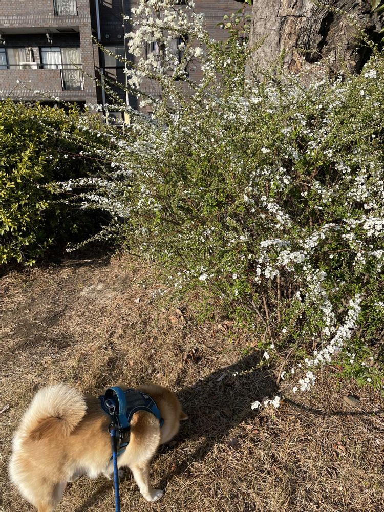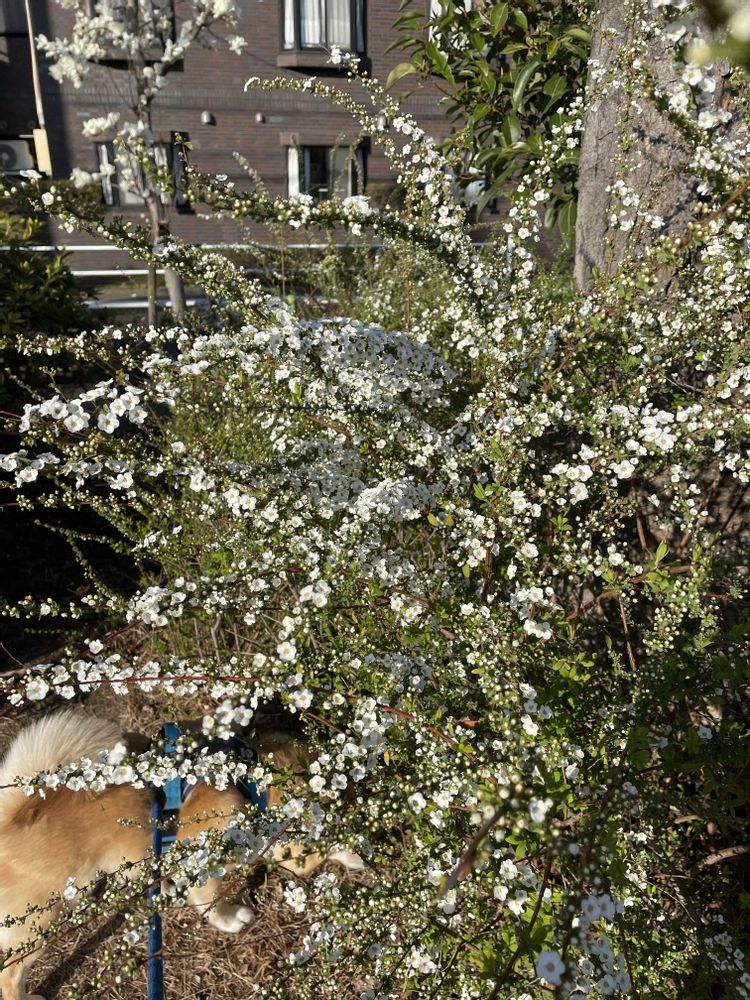 ユキヤナギがお日様に照らされて眩しいようだ😌