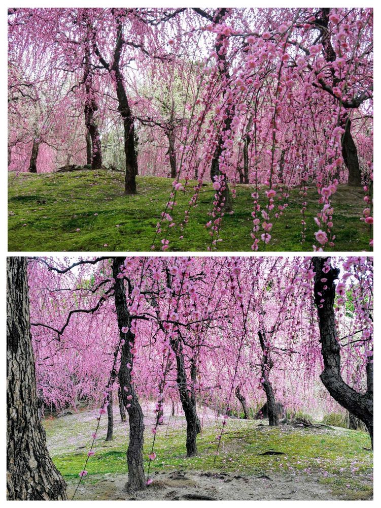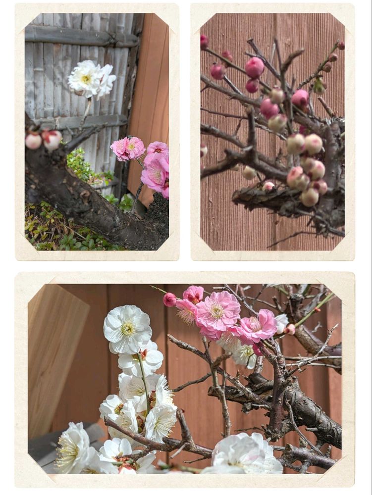 一本の木に紅白の花が咲く珍しい梅の木🩷