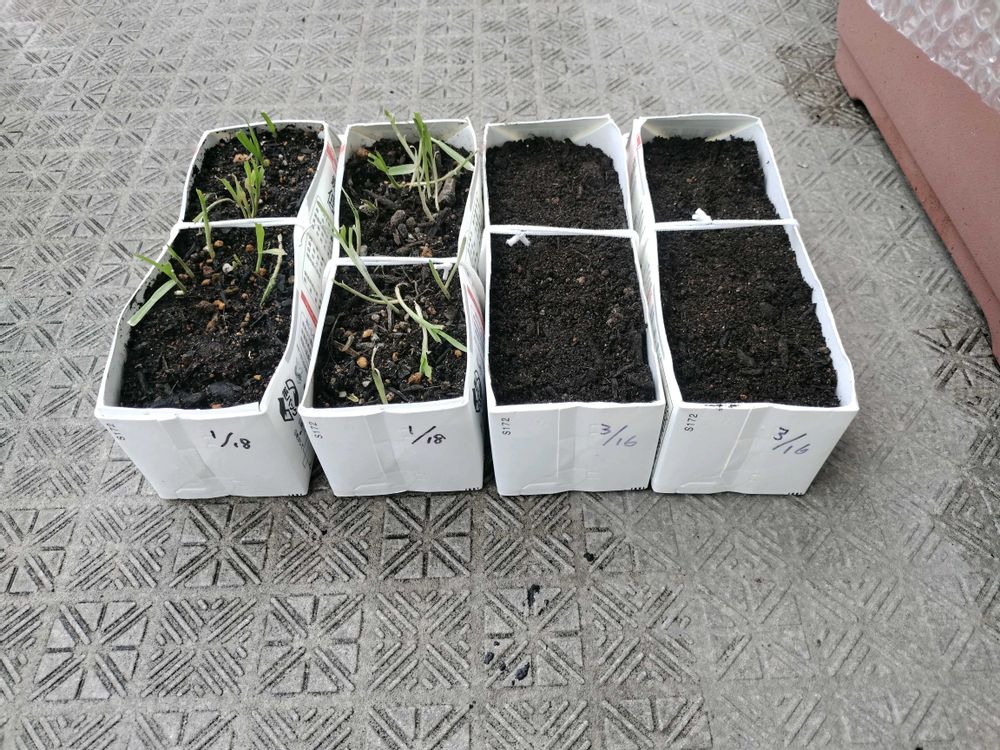 種蒔き後は雨にあてて、こたつに入れるのはミニトマトの鉢との交代まで待ったので3/18。