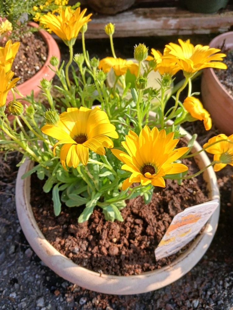 ①だいぶん前から買っていたお花をやっと植え替えました。②③はラナンキュラスランドセルです。やっと長い時間外に出せそうです。④⑤は最近立て続けに買っている花達です。⑤は行橋植物園で。ノースポールは行きつけのお花屋さんで買いました。