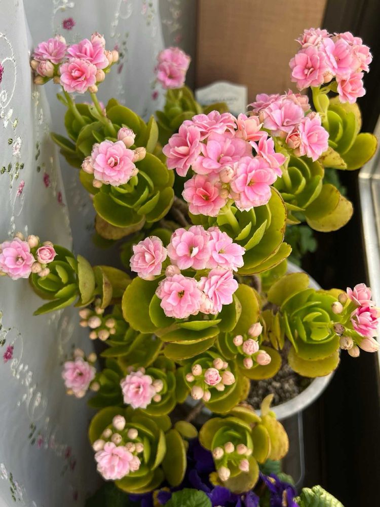 カランコエの八重のピンク🩷可愛いですね〜私はオレンジ🧡が咲いています HCで三色位入った鉢があったのですが 見送りました 鉢を片付けないと ごちゃごちゃ 大変な事に😅 昨日から投稿出来なくて コメントはできるのですけどね😊