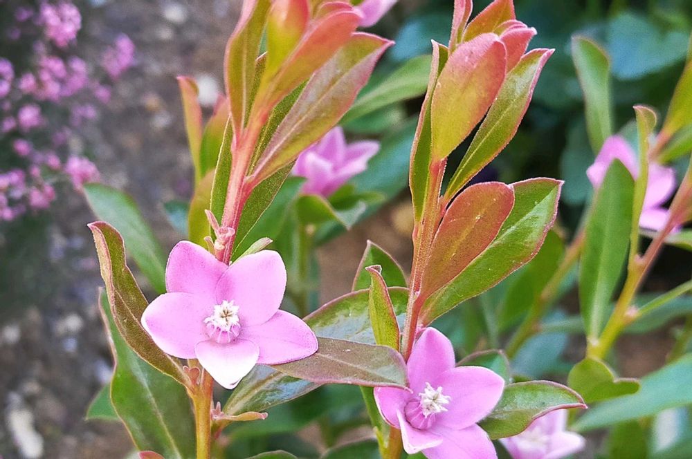 良く似たお花に ツルコザクラというコがいるようです。ツルコザクラの方は、紫色の雄蕊葯を出しているそうですから…