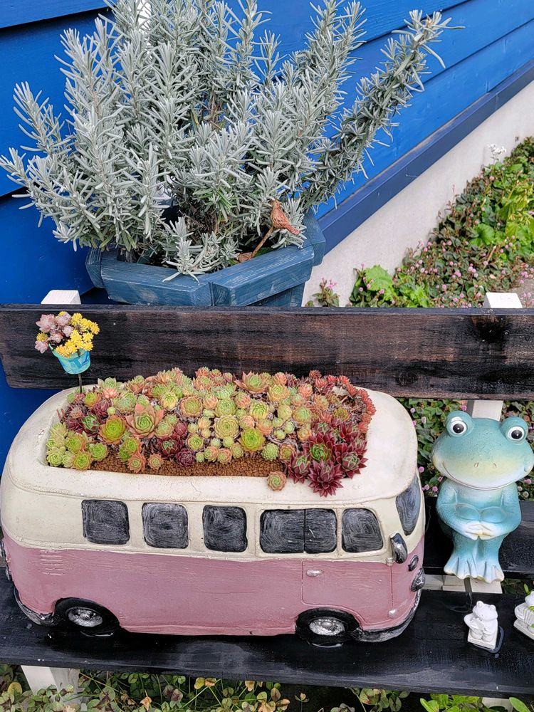 4️⃣多肉植物さん寄せ植えとカエルさん置物