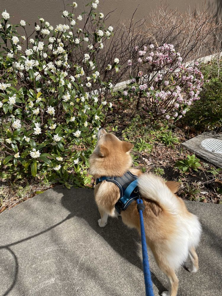 ぽんちゃんも沈丁花の香り好きなのかしらね〜🐶💕