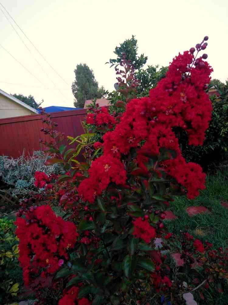 よく見る👀ピンクの百日紅より濃い燃えるような赤なんですね~✨花房も大きーい❗