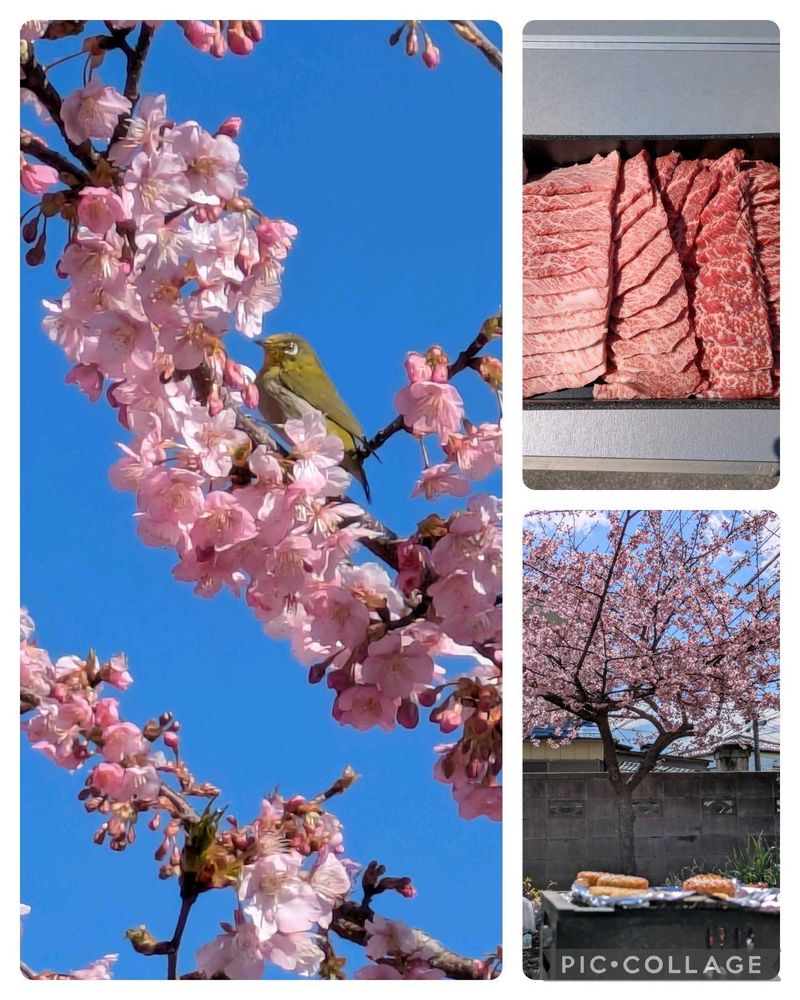 庭で A ランクの 焼肉バーベキューで 花見とは
