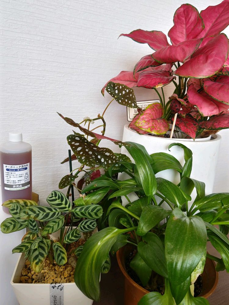 室内の観葉植物で試してみようと思います。候補の植物たち。冬場ちょっと元気をなくしてるこの中から、厳選して次回水やりのタイミングで試してみようと思います。