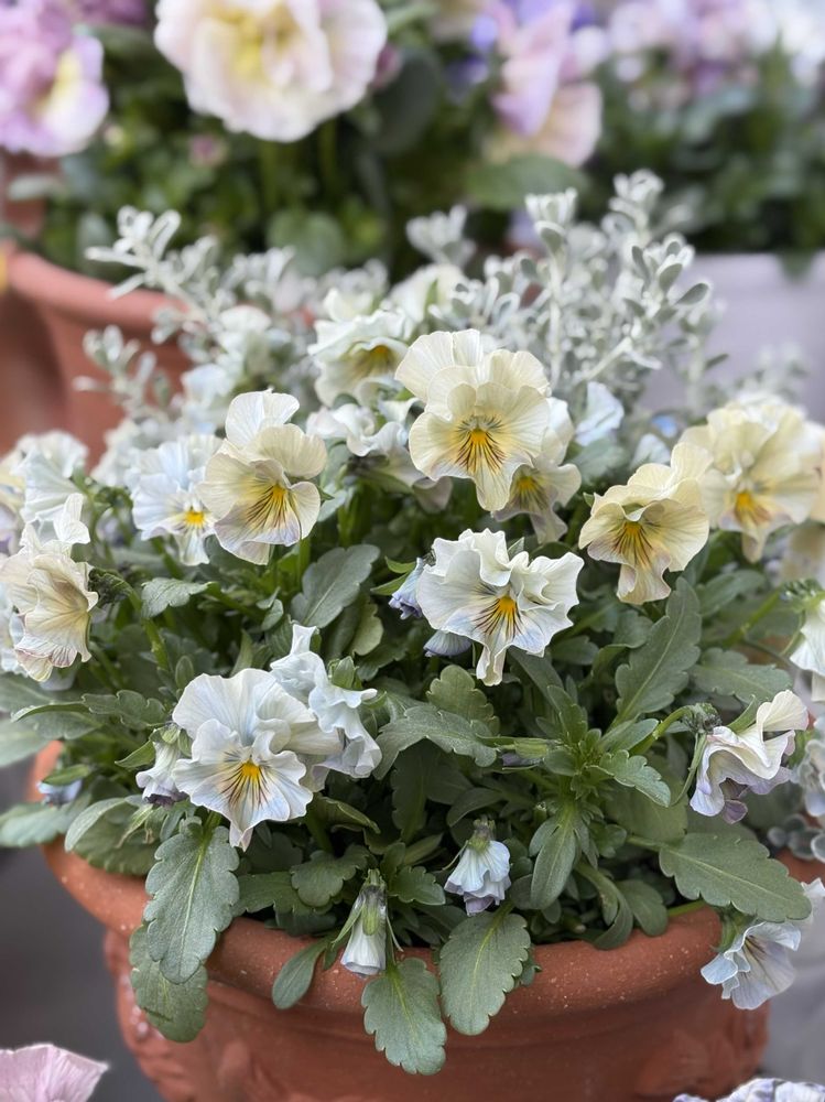 淡いトーンの上品なビオラちゃんシルバーリーフとリンクして綺麗な仕上がりよ🩵🩶✨