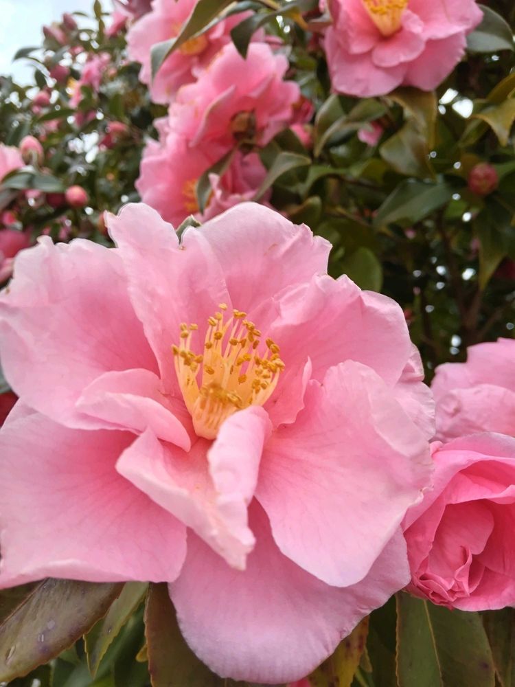🌸近くの駐車場脇のピンクのサザンカがびっしり!