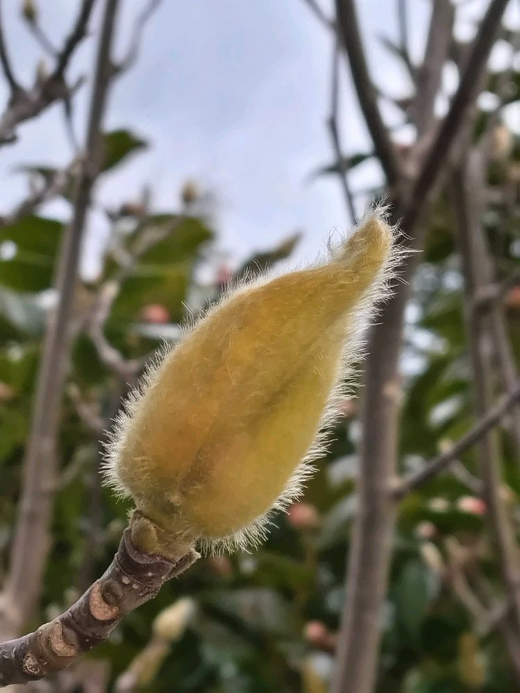🤍ホワホワのハクモクレンの蕾、まだ固い。