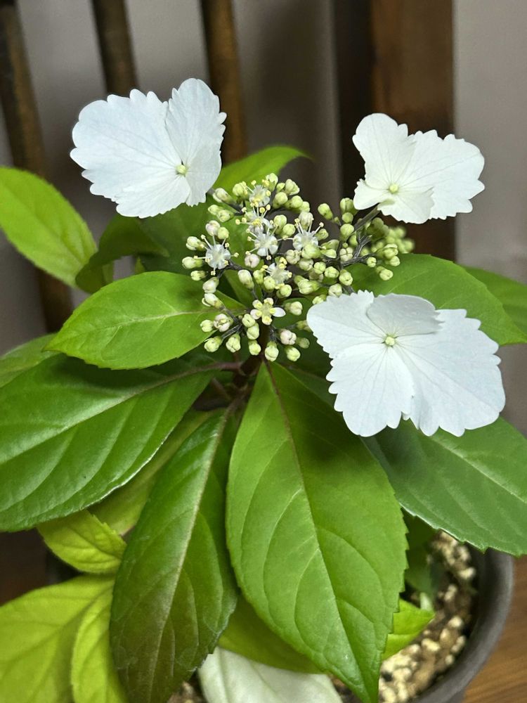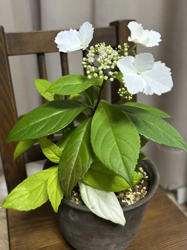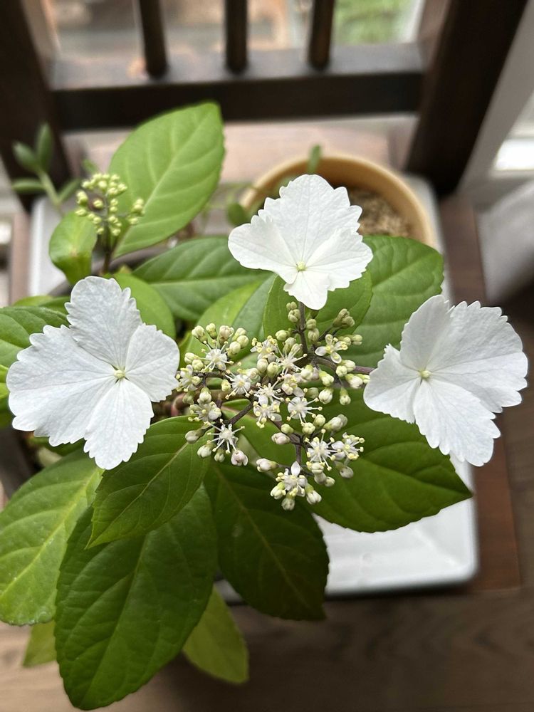 台湾常緑アジサイとヤマアジサイの交配種なんでしょうかね?今はこの時期咲かせたいので室内ですが戸外でも育つみたいですね⤴️