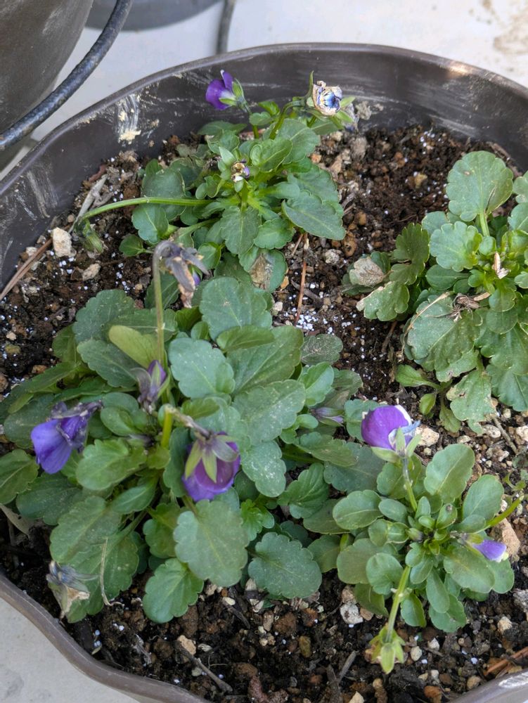 ②風除室で冬越しのこぼれ種ビオラ。色んな色で咲いてるけど白と黄色は現れなかった💦やっぱり強いのは何年経っても現れる🙂