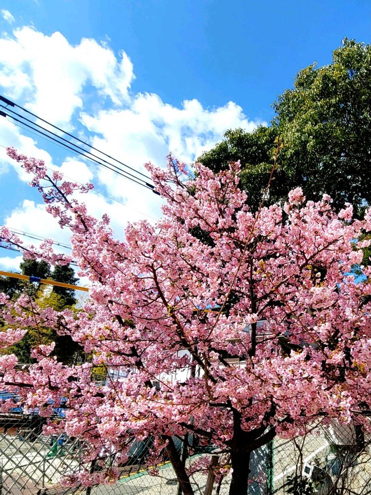 濃いピンクの桜が満開でとても綺麗ですね🌸