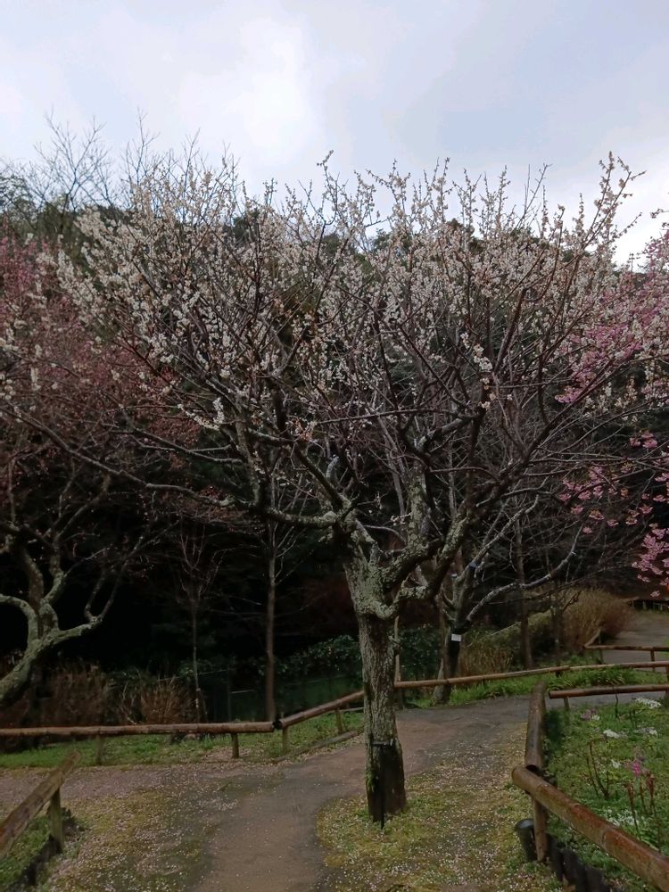 植物園の寒緋桜と、白梅
