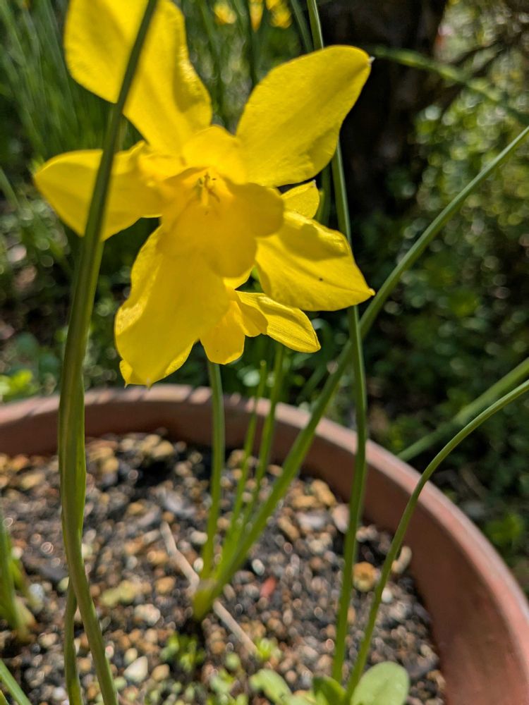 超🙄ミニ水仙。足元にて踏まれていたから、鉢に移動していました。茎が細いから花が咲いての再確認😅😆