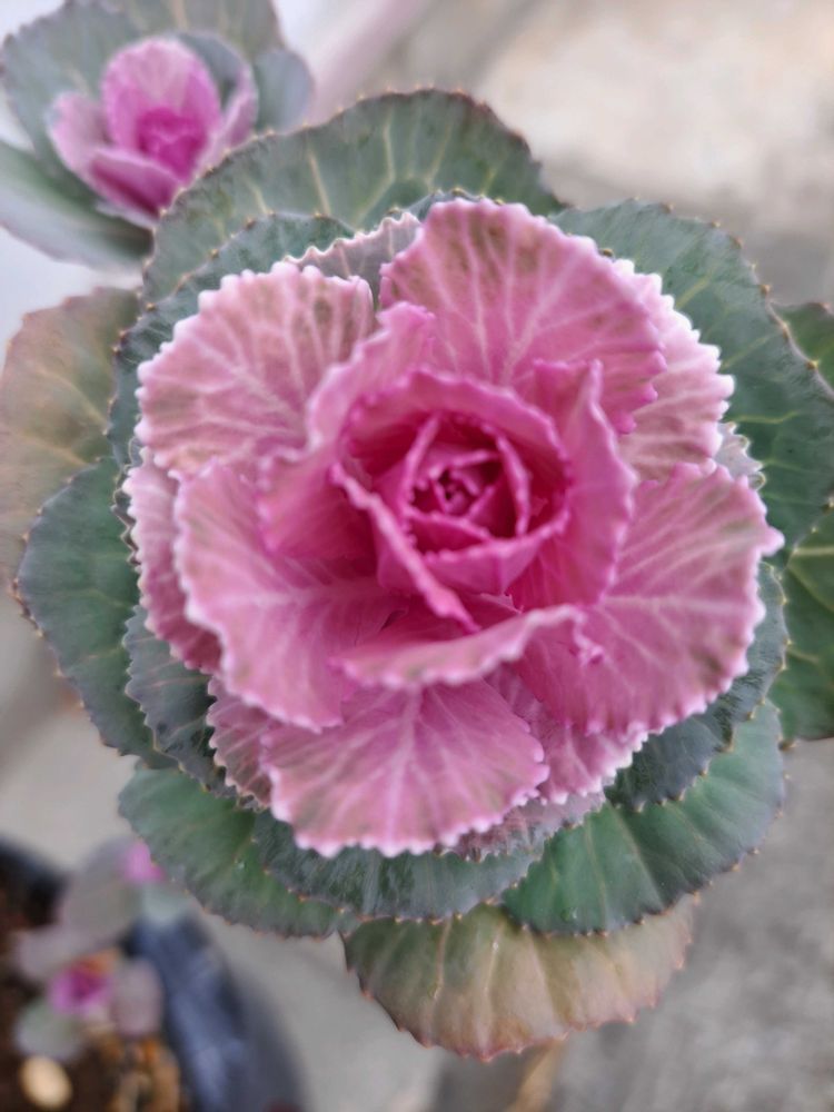 ふた冬を越した葉牡丹で、7cm位の大きさです!