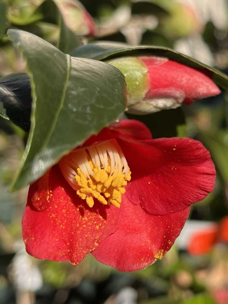 椿・紺屋小町(こうやこまち)♥️椿らしい濃紅色に、小ぶりなところがまたイイ(ㅅ ॑꒳ ॑*)