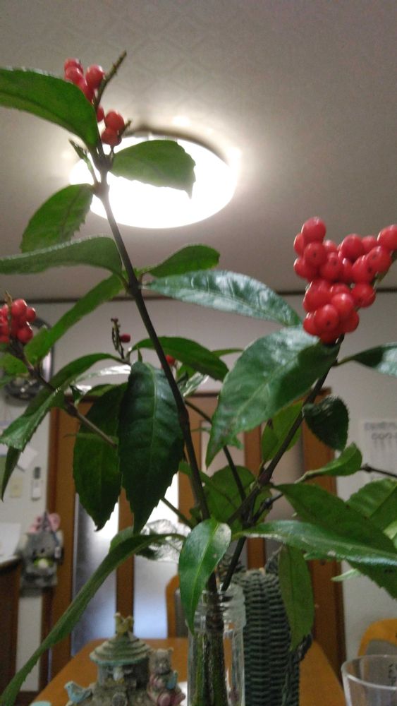 4⃣キッチン台には千両の赤い実が飾ってあって🎶