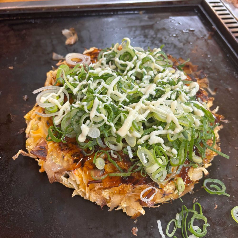 昨日娘とランチで鶴橋風月でネギポン酢餅入りのお好み焼きともちチーズとんぺい焼を食べたよー😊