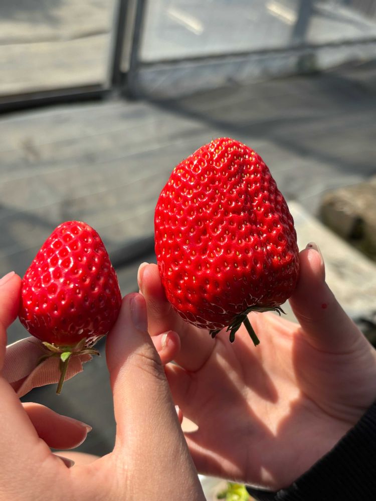 いちごはそんなに食べられないから大きいのを探して大きさ比べをしたの🍓