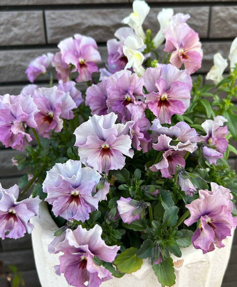 フリルパンジーさんがだいぶ咲いてきました!基本的にビオラ派なんだけど、気づけば何故か今年はパンジーが多くなってしまってた😆