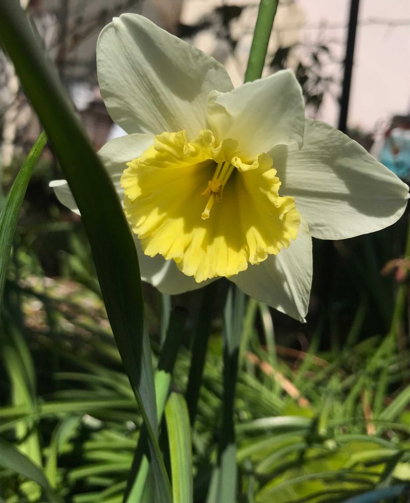 花壇のラッパスイセンが一輪だけ咲いています♪〜爽やかです☺️🥰
