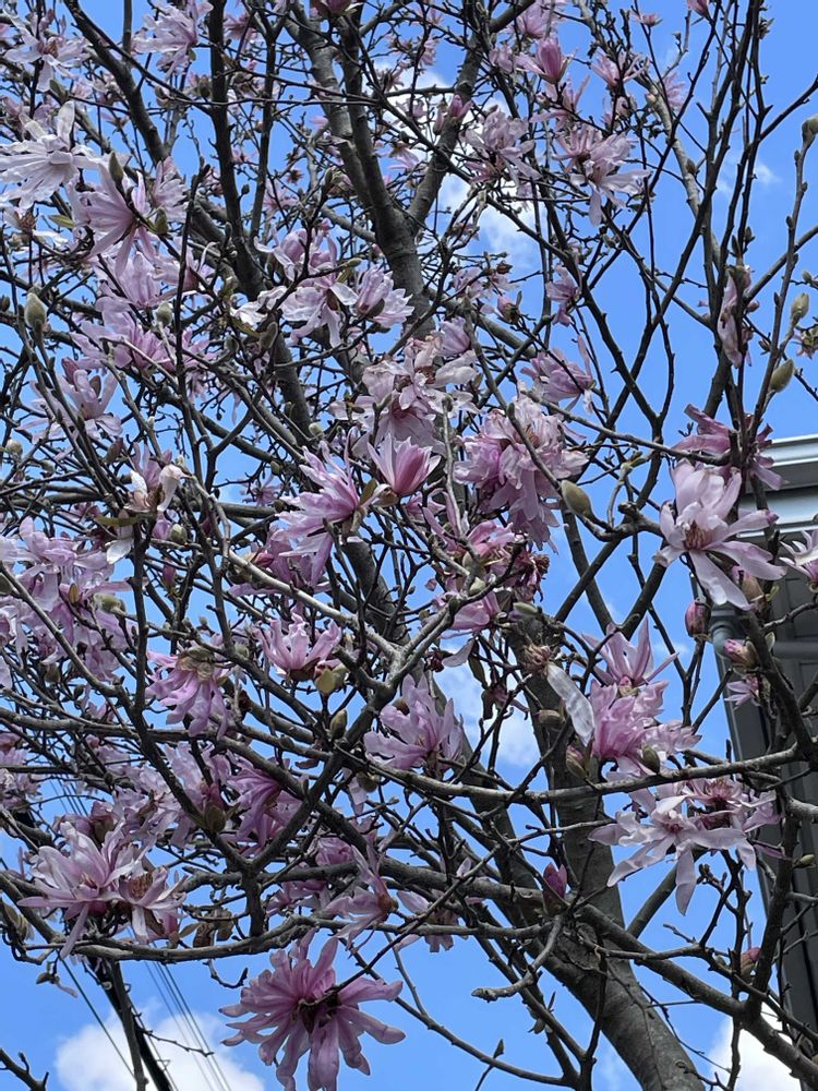 ハクモクレンもピンクのヒメコブシも今日の青空に映えて綺麗ですネ〜🤍🩷🥰