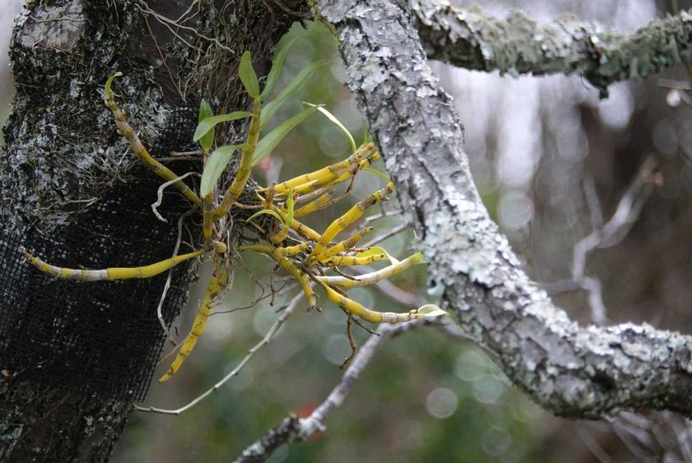節のある茎は偽鱗茎と呼ばれ一般的には(バルブ)と呼ばれるらしい。1年目のバルブは節毎にはがれる。葉は年の終わりに脱落、大きさが十分なら葉のなくなったバルブは次の年に花を咲かせる。(Wikipediaより抜粋引用)