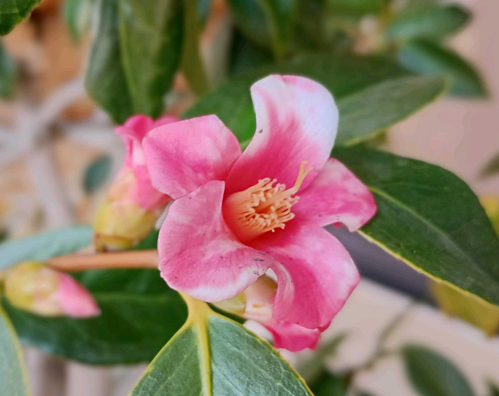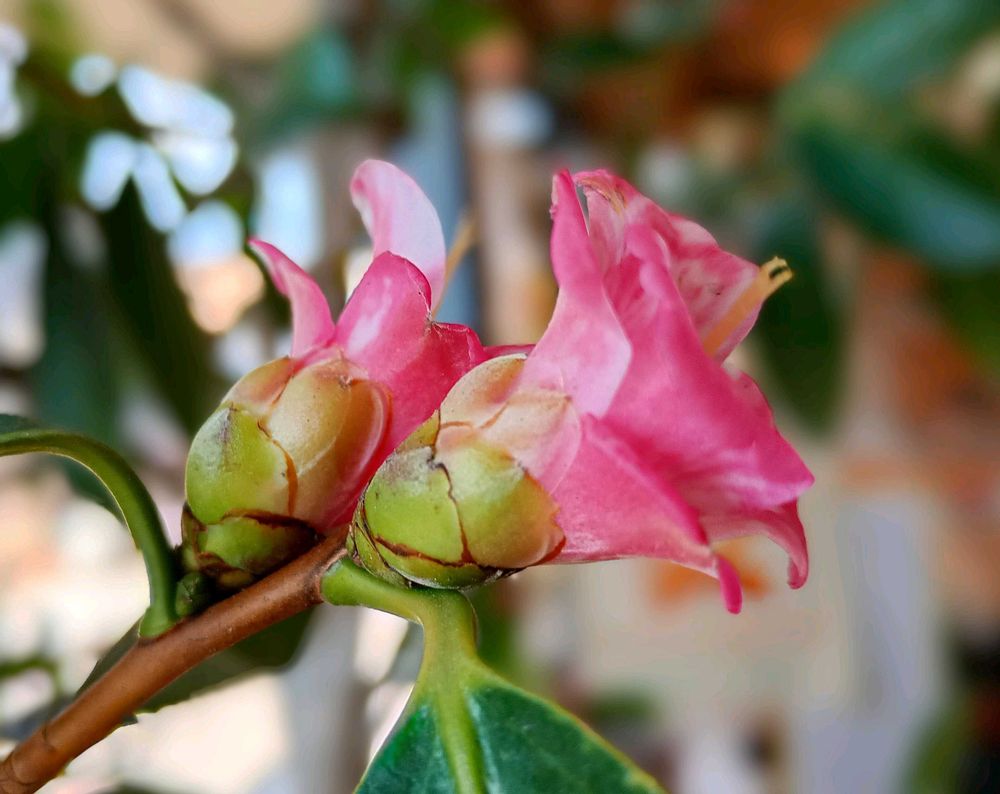 昨日は彼岸の中日💐。母の好きだったおはぎ😄父の好きだった桜餅🌸🌿を買いにいつもの和菓子店さんへ。 目的の半分はこの『胡蝶(絞り)侘助椿💮』見たさも😊✌