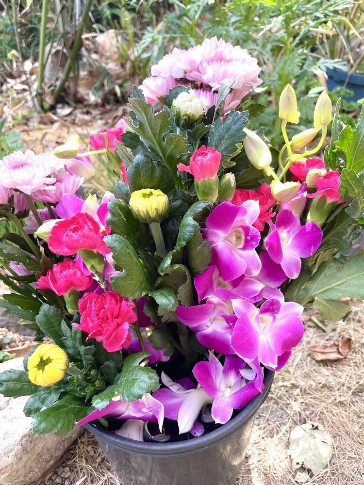スイセンをいっぱい使って仏花にしていましたが🥹
