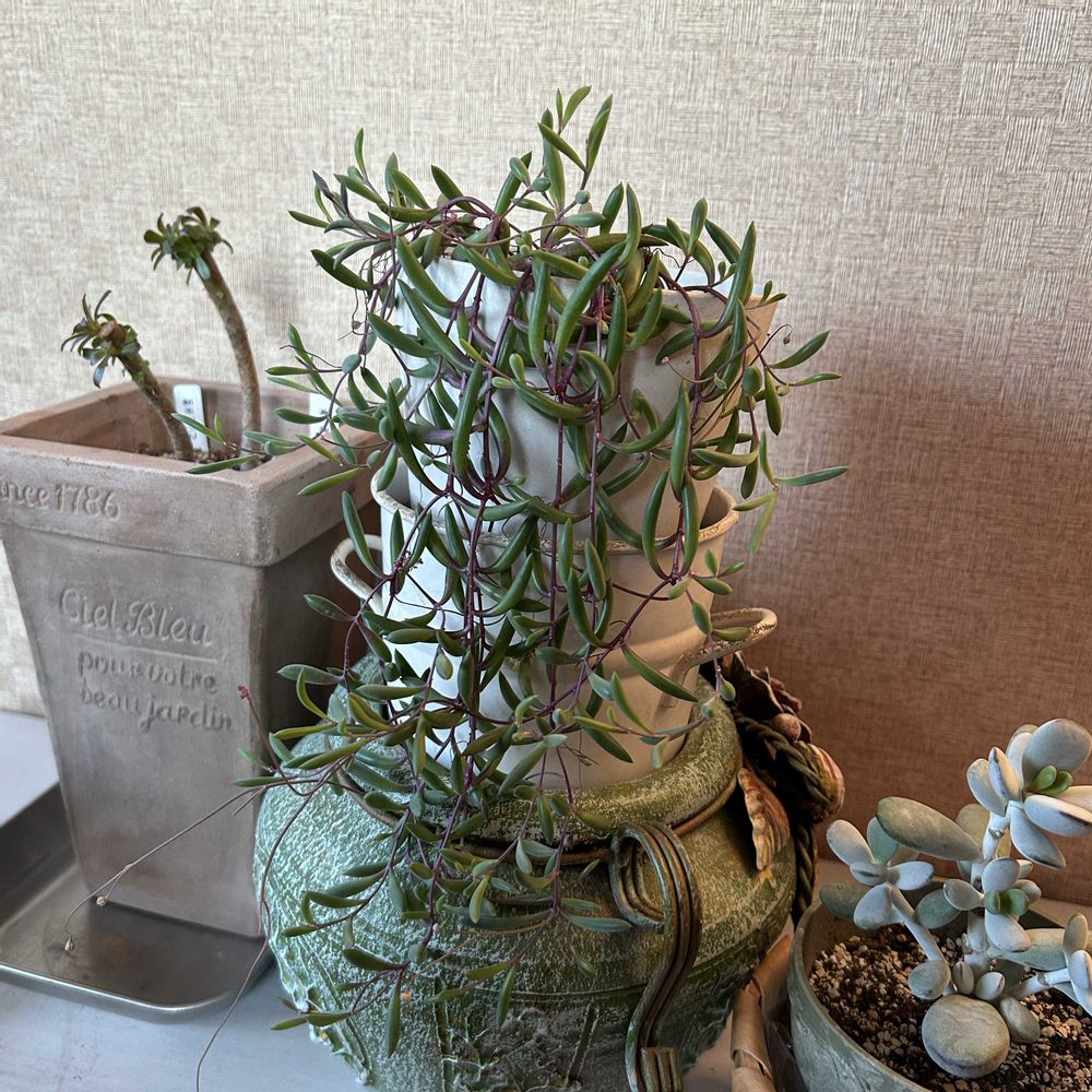 ルビーネックレス、グリーンだね。元気だね💓うちのずっと、透明っぽい小豆色してる。水不足なのか、老化なのか、痛みもある感じ。