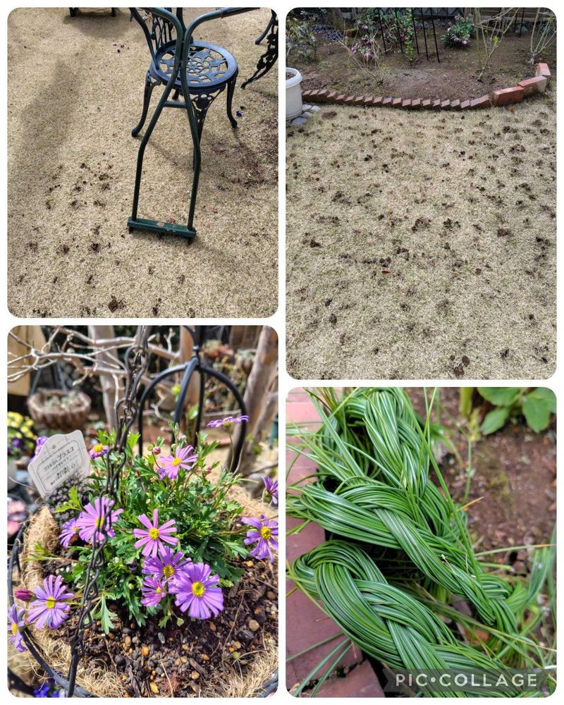 ↖2代目のエアレーター。↘サフランの葉っぱ、ジャマだから編んでみた😆↙初めて、買ったブラキカム😊ハンギングに入れました😊