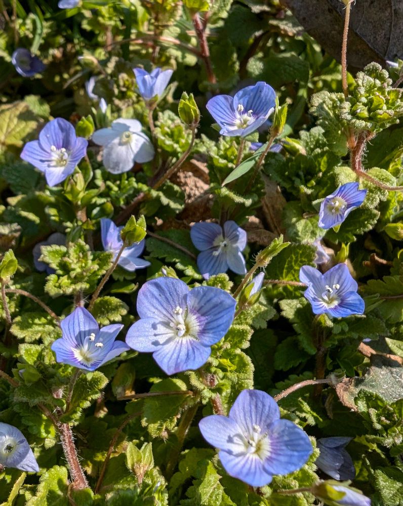 ①②③ミニバラの鉢に侵入したハコベ④やっと沢山咲き出したイヌフグリ