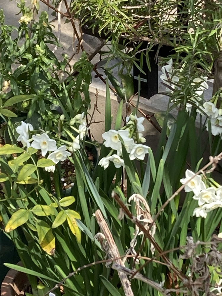 庭ではペーパーホワイトがあちこちから元気なお花を咲かせています♪
