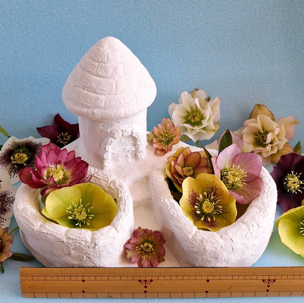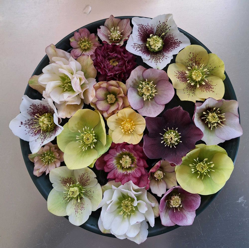 ③わが家のクリスマスローズのお花で花手水!?😄