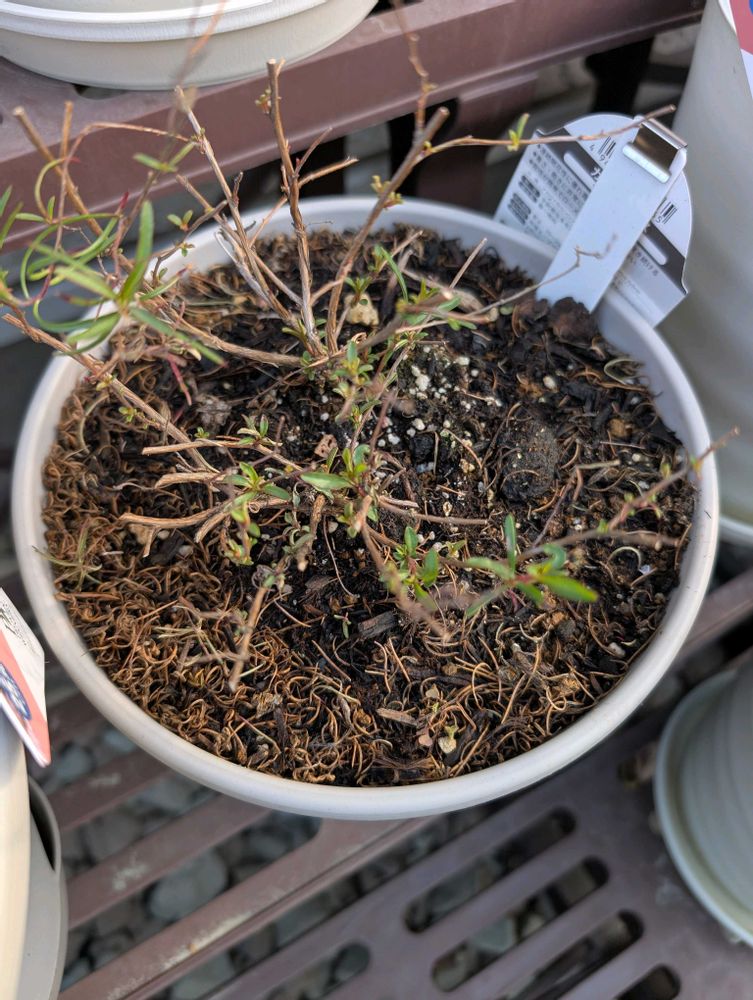 冬越ししたPWのお花たちの今の様子。新芽が順調に出てきています。もう寒波は来ないと判断して、昨日枯枝とかを全部取り除きました。春の準備OK!