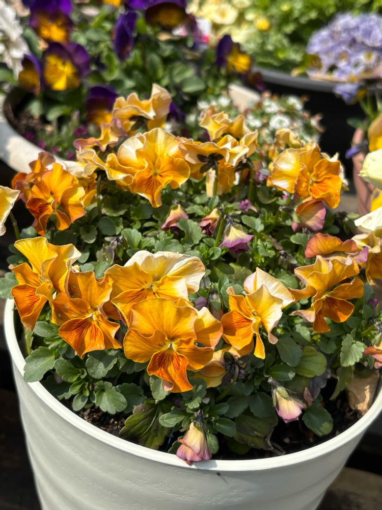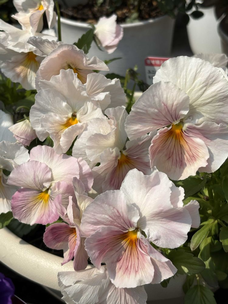 対照的に薄いピンク色の優しいパンジーさんにも癒されますね。