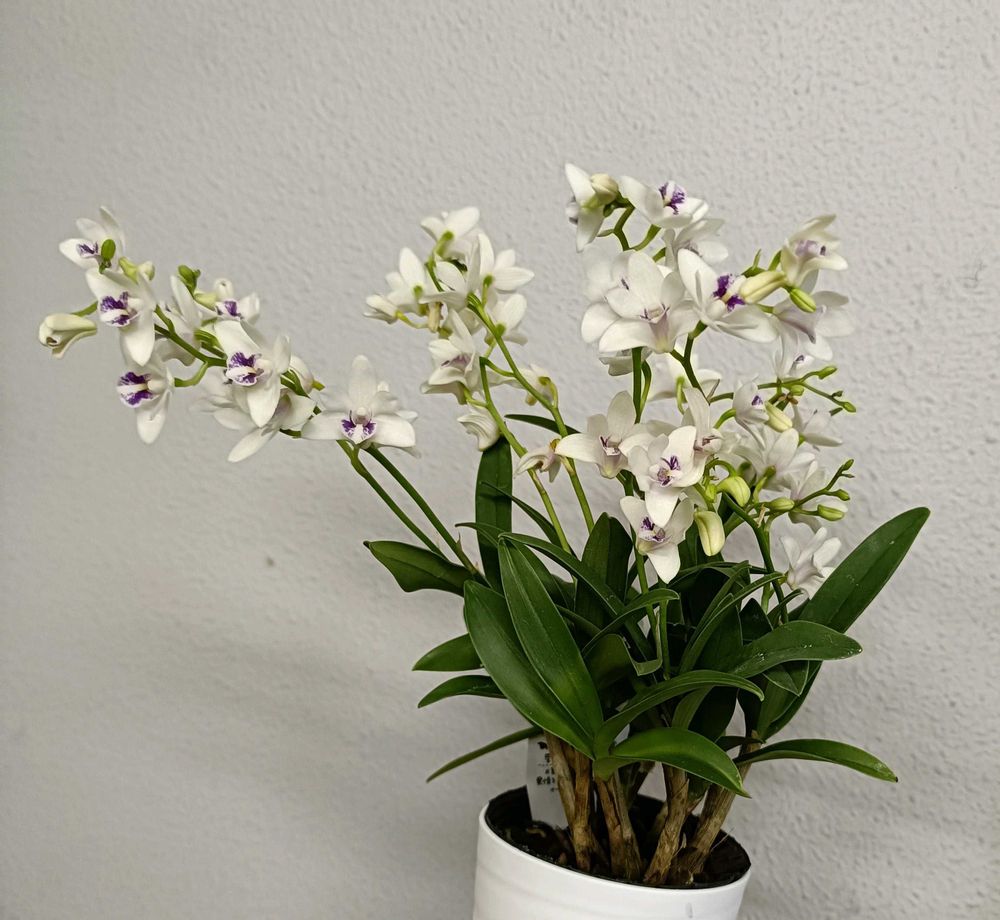 デンドロビウムのスパークリングホワイトがほぼ満開になりました。