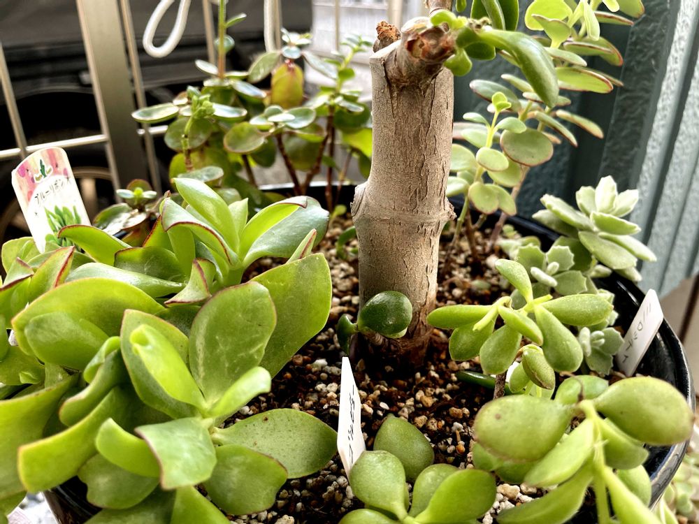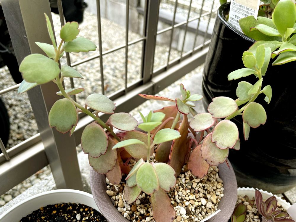 冬に、玄関に入れていたカネノナルキとカランコエたちをひと鉢にまとめました💚