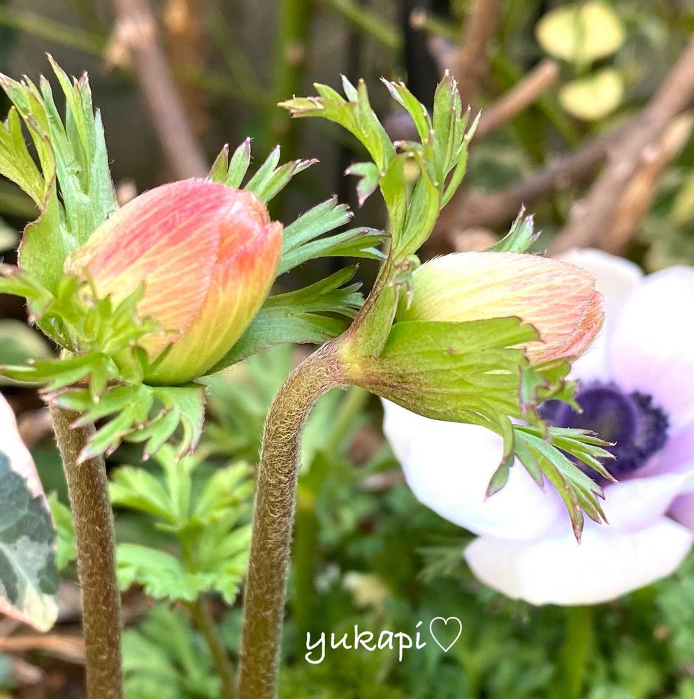 アネモネちゃんのもふもふの蕾が可愛すぎだわ😍