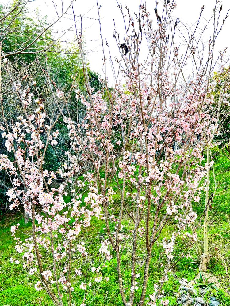 奥に植えているソメイヨシノはまだまだやっと蕾がほころび始めたくらいです。