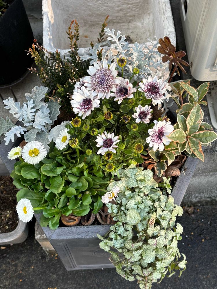 ① 寄せ植えのガーデンシクラメンが✩.*˚になったのでオステオさんを入れかえて 仕立て直し✨