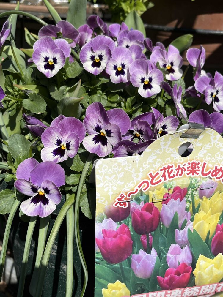 この鉢、花の大和さんのYouTube見て、8号鉢にチューリップ30球、ビオラ1株、回りが寂しかったのでムスカリ10+α