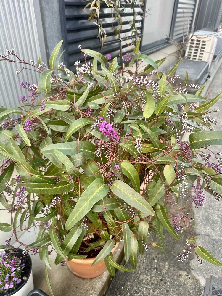 ハーデンベルギアの花がようやく咲き始めました。まだ、紫しか咲いていませんがピンクももうすぐ咲きそうです。