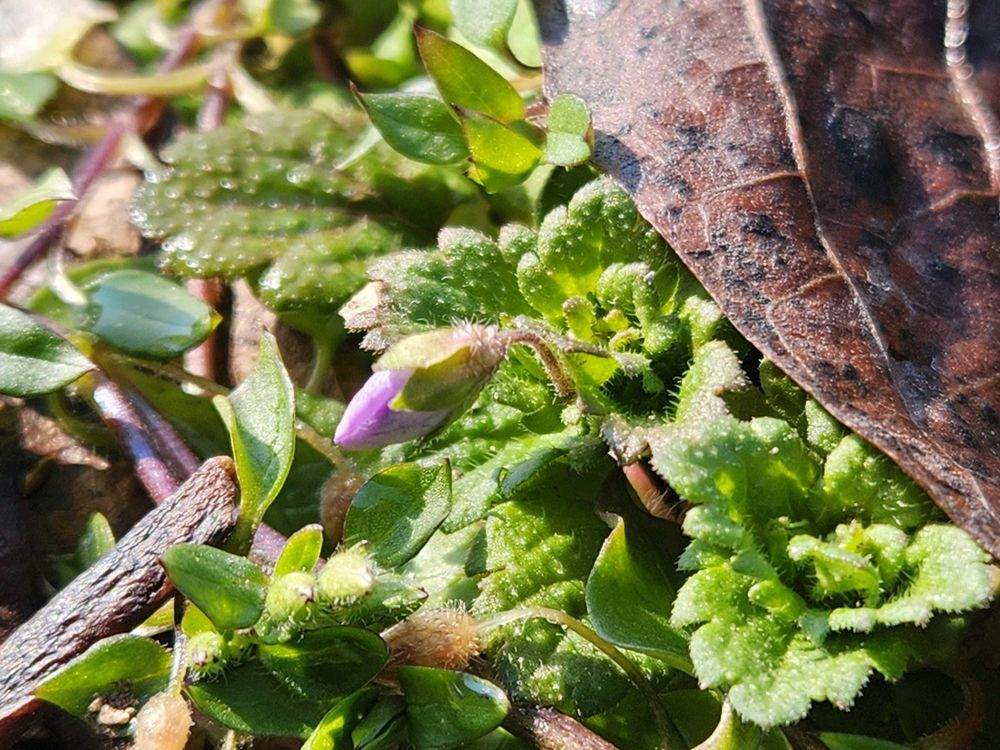 2️⃣ 蕾のオオイヌノフグリ 本日 畑にて (雪❄がとけたばかりで蕾しかない)