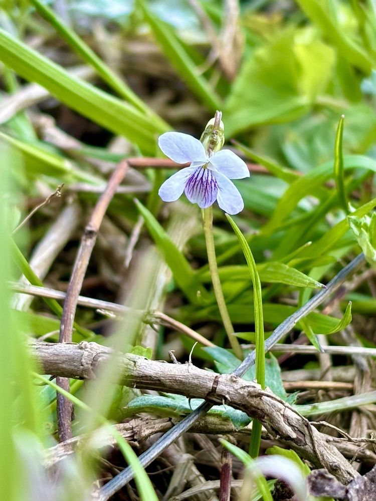 こちらはタチツボスミレがチラホラ咲き始めた感じです。もうニョイスミレなんですね〜